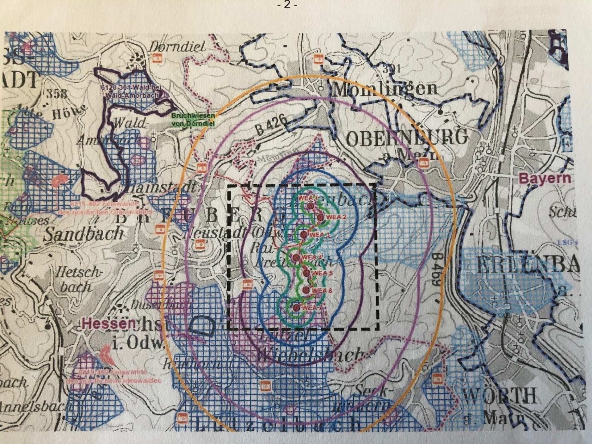 Gesamtfläche Windpark: Ca. 70.000 Bauflächen (Rodung) plus notwendige Abstandsflächen, in denen die Natur nicht unbeeinträchtigt ist.