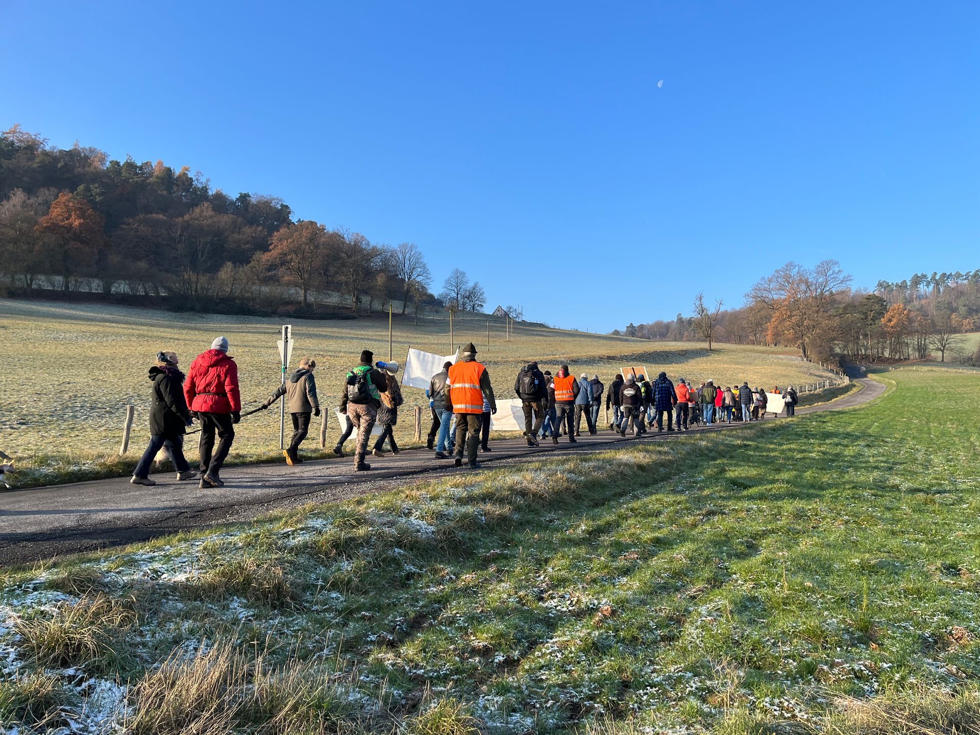 Am Sonntagmorgen bei Minusgraden und strahlender Sonne, startete der Protestmarsch zur Burg am Sportplatz in Hainstadt.